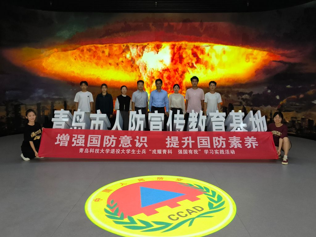 9月30日,在喜迎新中国75周年华诞之际,青岛科技大学“戎耀青科”退役大学生士兵同学、“火炬手·爱我国防”宣讲团成员在武装部副部长李春家,辅导员刘福民、王梦珂、郭颖等老师带领下来到青岛市人防宣传教育基地开展国庆主题活动。