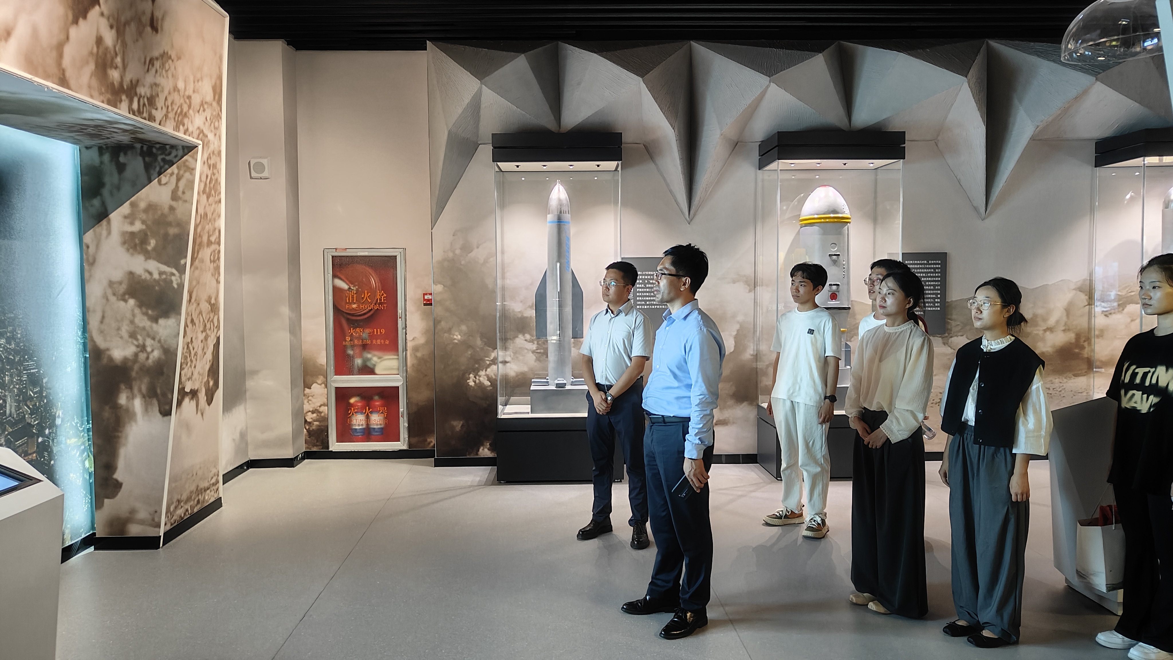 大家跟随展馆讲解人员认真参观了序厅、人防起源展区、高技术战争展区、世界先进战机展区、人防知识和自救互救展区、青岛人防发展历程等十大展厅,体验了全息投影、球幕裸眼3D等技术,丰富的内容,震撼的场景、高科技的演示设备和逼真的展示效果,寓知识性、趣味性、互动性于一体,使参观师生全方位,多角度、立体化地了解了中国人民防空的发展历程和职能任务。